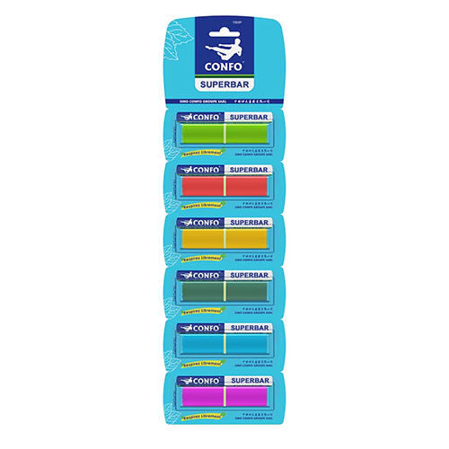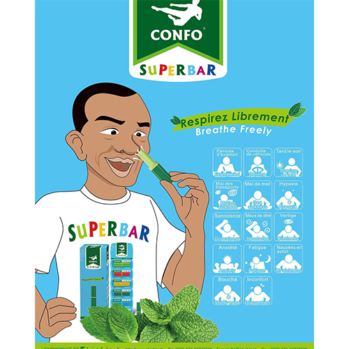 This composition distinguish Confo Super bar from other products on the market. The product has a mint fragrance and gives pleasant smell to the nose. Confo Superbar helps relieve you of headache, fatigue, anxiety, motion sickness, hypoxia, air sickness, stuffy nose, discomfort, dizziness. The product weighs 1g with 6 different colors, there are 6 pieces on a hanger, 48 pieces in a box and 960 pieces in a carton. Confo Superbar continues to be the best selling product in the Africa market. Choose Confo Superbar as your choice of relief.