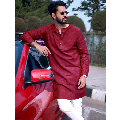 Magic Maroon Color Simple Outfits Comfort Cotton Panjabi~ 1 Pcs