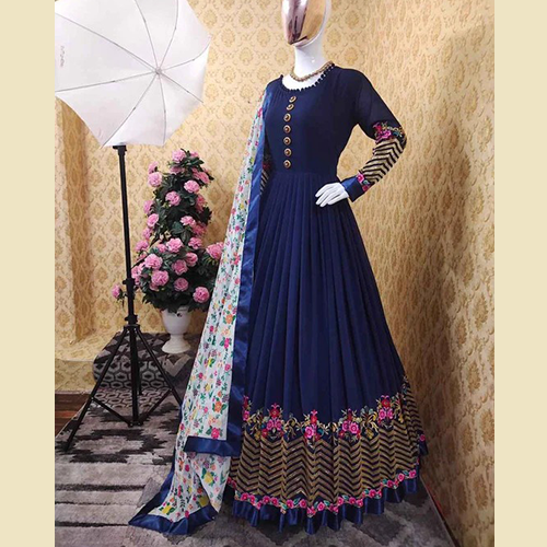 রেডিমেড জর্জেট এমব্রয়ডারি পার্টি ড্রেস
