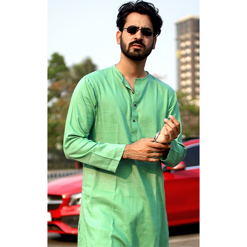 Aqua Green Color Simple Outfits Comfort Cotton Panjabi~ 1 Pcs
