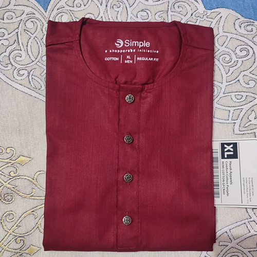 Magic Maroon Color Simple Outfits Comfort Cotton Panjabi~ 1 Pcs