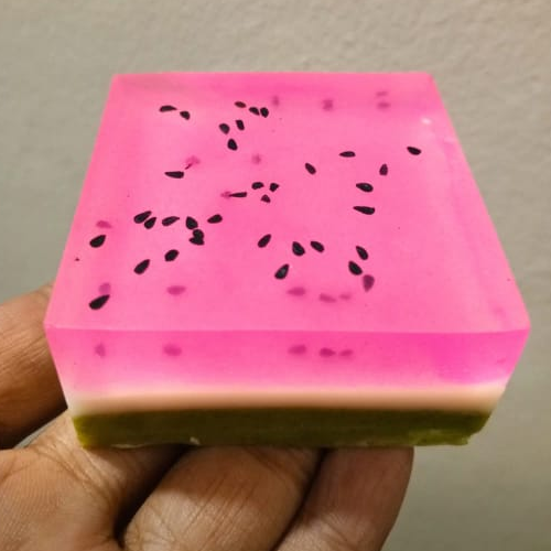 your senses with our Natural Handmade Watermelon Soap! This refreshing 90 Gm bar combines a
