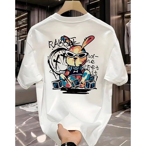 Stylish White Color Printed Unisex Drop Shoulder T-Shirt (01003)~ 1 Pcs